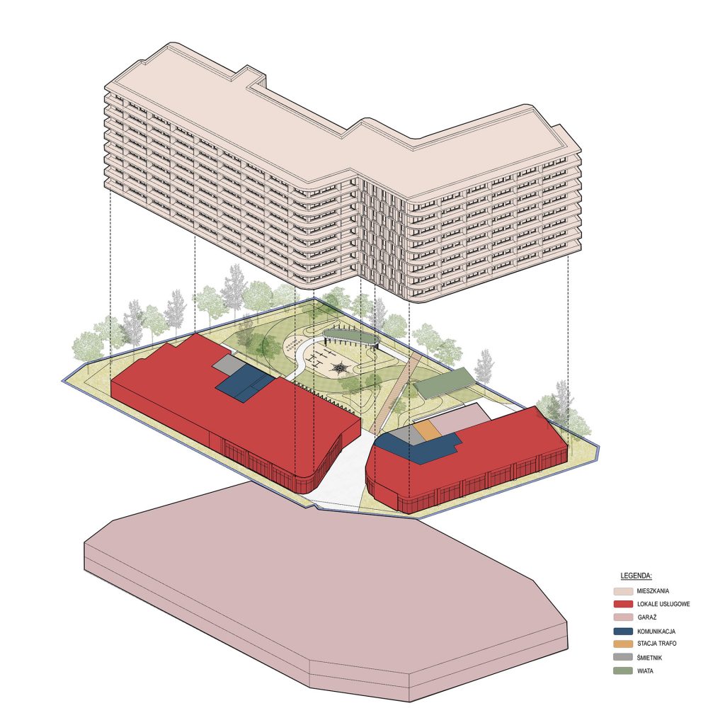 - W parterach budynków, od strony dróg publicznych, przewidziano lokale usługowo-handlowe umożliwiające lokalizację funkcji pierwszej potrzeby z myślą o potrzebach i komforcie mieszkańców.